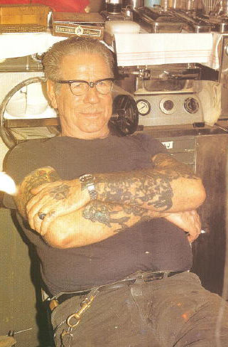 Norman Keith Collins was an American tattoo artist who was also known as “Sailor Jerry”. Norman “Sailor Jerry” Collins, was born January 14, 1911 in Reno, Nevada, and learned tattooing while he hopped freight trains across the country, from a man named Tatts Thomas. Thomas is credited for showing him how to use tattoo machines. “Sailor Jerry” is said to have practiced on drifters and later sailed the Pacific Ocean in the Navy and then settled in Hawaii. A big rough edged guy with a dirty mouth, he often wore plain white T-shirts,  exposing his ink-sleeved arms. Sailor Jerry got his name when his father noticed a similarity in disposition between Norman and the family mule “Jerry”. Mike Malone who took over Sailor Jerry’s shop after he died, said of Jerry  “he was a class-A pirate.”