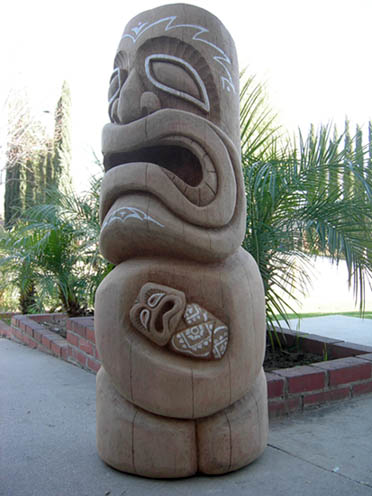 I’ve been carving Tiki since 1995 and usually sell to private collectors. I have the only tiki on Malibu Pier, a tiki in the Luau restaurant in Beverly Hills, 3 tiki’s in Frankie’s Room in Vegas plus one of my favorites in the owner’s house. I’ve done tiki’s for Monster Garage, West Coast Choppers, Tiki Oasis, Viva Las Vegas, plus I’ve been the featured carver for Tiki Magazine. I’ve even had tiki’s in a photo shoot for Hustler Magazine.