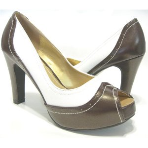 #8 Brown & White Platform Peep-Toe Pumps Women