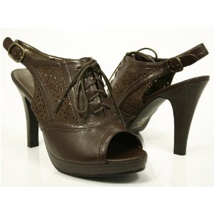 #7 Brown Slingback Peep Toe Sandal Lace Up